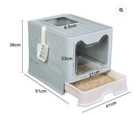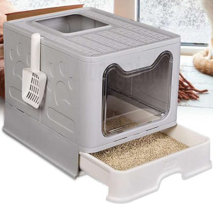Arenera Plegable y portátil: el diseño plegable de la caja de arena para gatos la hace cómoda para almacenar, instalar y desmontar, el ahorro de espacio y la portabilidad son las ventajas más grandes. Se puede utilizar cuando y donde tus gatos la necesiten. Ideal para viajes.Diseño único: diseño unidireccional, entrada frontal y salida en la parte superior, la entrada frontal de cierre automático simplemente para entrar, no salir. Por la puerta de entrada superior se puede entrar y salir a voluntad, además puedes entrenar a tu gato y aumentar la diversión. El pedal de arena hueco de gran superficie protege las patas del gato, sacude la arena para gatos durante el salto, no hay necesidad de preocuparse de que los gatos se ensucien por todas partes.Fácil de limpiar: el diseño de cajón extraíble facilita el palear y cambiar la arena, fácil para limpiar la arena para gato con un mínimo de desorden. Equipado con una pala de arena para gatos a juego.Gran espacio privado: baño para gatos con gran espacio interno, el cual es cómodo para que los gatos entren, salgan y giren. La estructura completamente cerrada protege la privacidad del gato, lo que hará que se sienta más seguro y cómodo, reduce la emisión de olores en la casa y mantiene el aire fresco.Material ecológico: se utilizan materiales de polipropileno y poliestireno de alta calidad para garantizar la seguridad de las mascotas.