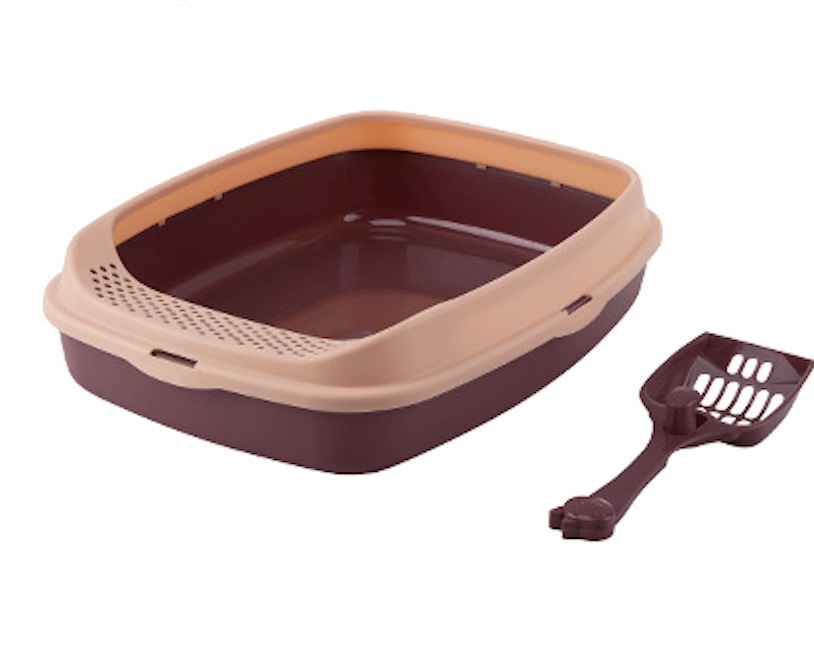 Este arenero para gatos con pala para recoger los excrementos ha sido fabricado en plástico resistente