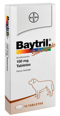 Baytril® Tabletas 150 mg es un medicamento que actúa como agente antibacteriano y tiene un amplio espectro al combatir bacterias grampositivos y gramnegativos, así como micoplasmas y pseudomonas. Su especial mecanismo de acción no genera algún tipo de resistencia cruzada con agentes antibacterianos de otra clase. Este medicamento se absorbe eficazmente después de su administración y su absorción; no se ve alterado por la ingesta de alimentos. Su capacidad de introducirse en los tejidos es superior a otros agentes bacterianos.