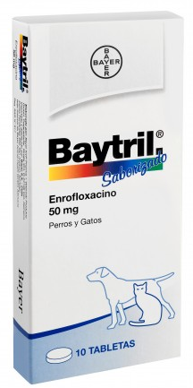 Baytril® Tabletas 50 mg es un medicamento que actúa como agente antibacteriano y tiene un amplio espectro al combatir bacterias grampositivos y gramnegativos, así como micoplasmas y pseudomonas. Su especial mecanismo de acción no genera algún tipo de resistencia cruzada con agentes antibacterianos de otra clase. Este medicamento se absorbe eficazmente después de su administración y su absorción; no se ve alterado por la ingesta de alimentos. Su capacidad de introducirse en los tejidos es superior a otros agentes bacterianos.