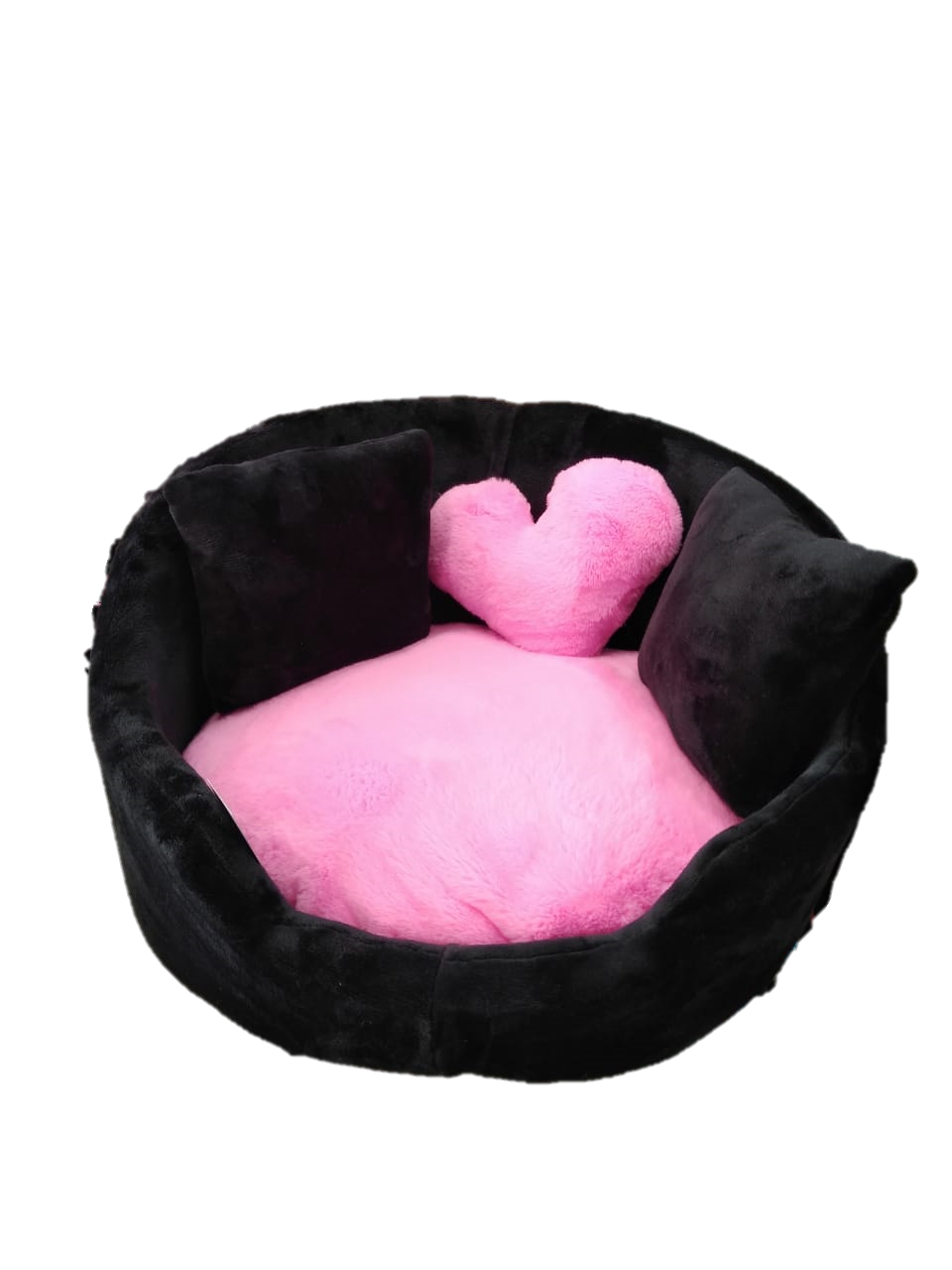 CAMA REDONDA NEGRO CON FUCSIA 62X65CM