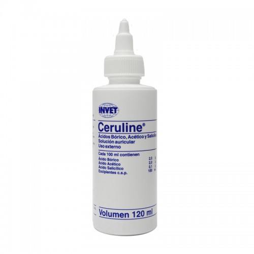 Solución AuricularCOMPOSICIÓN: Ácido bórico 2g/100ml, Ácido acético 2g/100ml, Ácido salicílico 0,1g/100mlINDICACIONES: Limpiador auricular indicado en Perros y Gatos, ayuda a remover material celular y cerumen. Sirve como limpieza de rutina y controla olores del canal del oído. También puede emplearse después del baño y para facilitar el examen de oído.