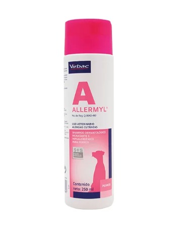 ALLERMYL diseñado específicamente para satisfacer las necesidades de perros y gatos con desequilibrios en la barrera cutánea.Ayuda a recuperar la estructura natural de la piel y estimula las defensas naturales de la piel, ayudando a combatir los microorganismos y prevenir las infecciones.Características y beneficios del producto:Ayuda a mantener la protección de la barrera cutánea frente a agresiones medioambientales.Efecto calmante e hidratante (Complejo lipídico cutáneo). Ayuda a mantener la salud de la piel con tecnología S-I-S (Skin Innovative Science technology).Efecto antiadhesivo de microorganismosDefensa microbiana natural de la piel Limpia la piel y el pelo a la vez que calma la piel irritada. Útil en pacientes que tienen defectos estructurales en la barrera epidérmica (piel) (Dermatitis Atópica).Posología y modo de empleo:Mojar el pelo con agua tibia y aplicar.Frotar suavemente y aclarar.Repetir y dejar actuar durante 5-10 min.Aclarar con agua limpia abundante.Utilizar semanalmente o según consejo veterinario.