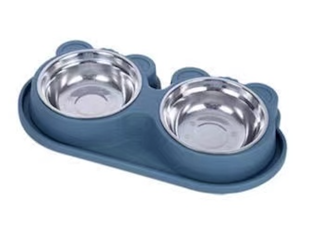 Comedero para perros y gatos con platos en acero inoxidable, pueden retirarse para ser lavados de manera independiente