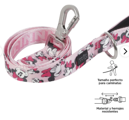 ¡La Correa Odye Minnie Mouse grande para mascota es la compañera perfecta para los paseos con tu peludito! Es segura, resistente y cómoda, ideal para mascotas medianas y grandes. Está elaborada en poliéster y neopreno brindando mayor agarre, además, cuenta con una manija en la parte superior y un mosquetón de seguridad de fácil postura para sujetar al collar o arnés. ¡Su diseño estampado de Minnie Mouse te encantará!Manija recubierta Mejor agarre y suavidadAnillo tipo D para colgar accesoriosFácil de limpiarMosquetón para llevar fácilmente colgadoMaterial y herrajes Resistentes