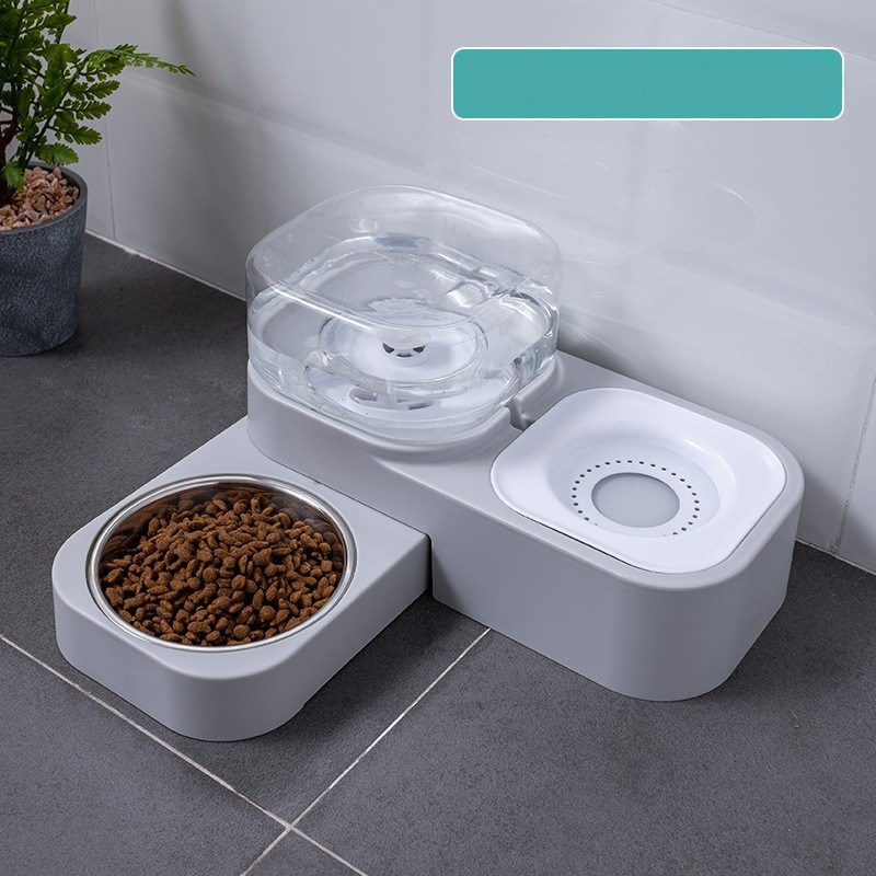 Comedero doble con dispensador automático de agua, diseñado para brindar alimentación e hidratación continua a tu mascota en un solo lugar. El tazón de comida está acompañado por un sistema tipo “burbuja” que libera agua gradualmente desde una botella inversa, manteniéndola fresca y disponible en todo momento. Fabricado en plástico PET de calidad alimentaria, resistente y fácil de limpiar. Su color gris neutro lo hace ideal para cualquier estilo de hogar, combinando estética y funcionalidad.