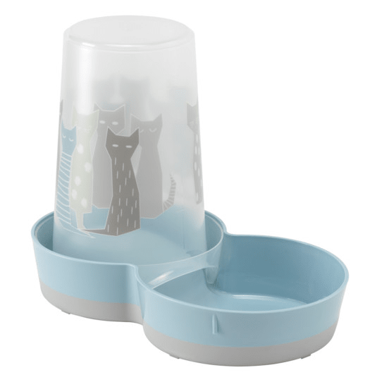 ¿No son estos los gatos más elegantes que has visto en tu vida? ¡No hay necesidad de esconder tu Tasty Masaai!¡Convenientemente se puede usar tanto para agua como para alimentos! La salida de agua es más pequeña para permitir un flujo tranquilo. Gracias a los vasos comunicantes, la bandeja inferior nunca se desbordará. El plástico transparente le da una visión de los suministros de alimentos o agua restantes. Gracias a nuestra innovadora técnica de decoración IML (In Mould Label), este encantador diseño es resistente a los arañazos y a los rayos UV.Fabricado con plástico de primera calidad no tóxico y libre de BPA. Además, ¡100% reciclable!