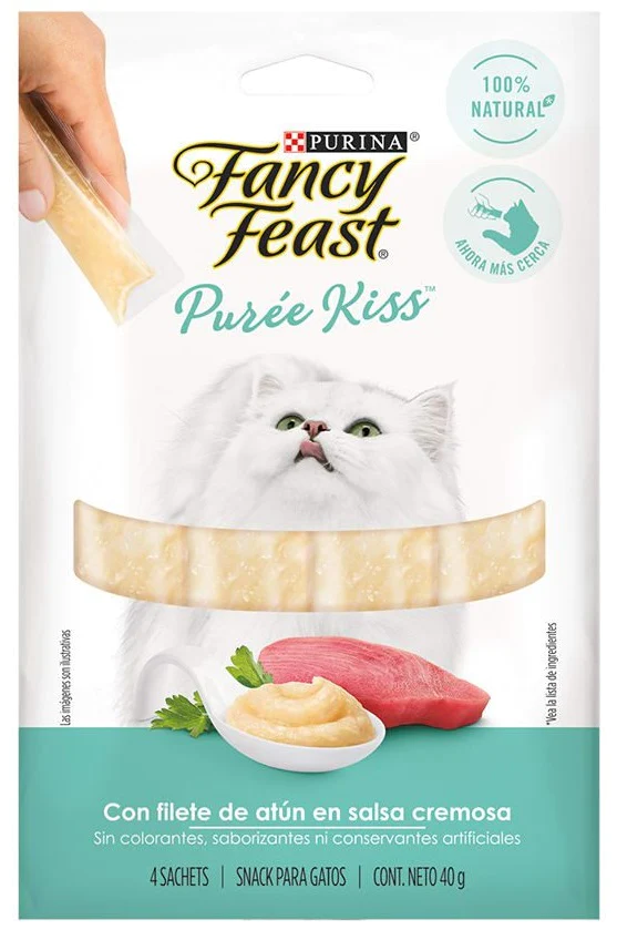 FANCY FEAST PUREE KISS 4 SACHETS CON FILETE DE ATÚN EN SALSA CREMOSA 40 gr cantidad