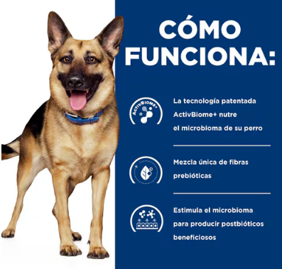 Hill’s Prescription Diet Gastrointestinal Biome es un alimento para perros con alto contenido de fibra que ha demostrado clínicamente ayudar a mejorar las heces en 24 horas y reducir el riesgo de recurrencia. Hecho con la tecnología de ingredientes ActivBiome+ para activar rápidamente el microbioma intestinal y ayudar a manejar problemas gastrointestinales complejos.