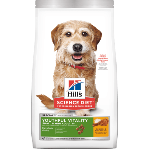 El alimento para perros Hill’s® Science Diet® Youthful Vitality Small & Mini proporciona nutrición balanceada con precisión para combatir los efectos del envejecimiento en su perro Adulto de 7+ años.Una mezcla exclusiva de ingredientes favorece la función cerebral, la interacción, la energía y vitalidadÁcidos grasos omega-3 y -6 para un pelaje de lujoIngredientes fáciles de digerir para una digestión sanaSe recomienda para:Perros adultos de 7+ años de edad