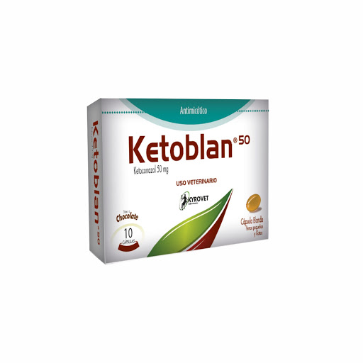 KETOBLAN 50 mg es un antimicótico sistémico en presentación de cápsulas blandas de gelatina (CBG), cuyo principio activo es ketoconazol. Está indicado para tratar micosis sistémicas y tópicas en perros pequeños, medianos y gatos, además de usarse en el manejo del hiperadrenocorticismo en caninos