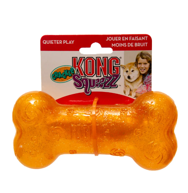 KONG Crackle es un giro innovador en la divertida y apreciada gama de KONG Squeezz. Estos juguetes emiten un crujido único e incitante, ideal para un juego silencioso. Squeezz Crackle tiene un color brillante y emite unos destellos que no pasan desapercibidos. Su flexible material es perfecto para los juegos de buscar y recoger y garantiza grandes dosis de diversión tanto a los perros como a sus dueños.