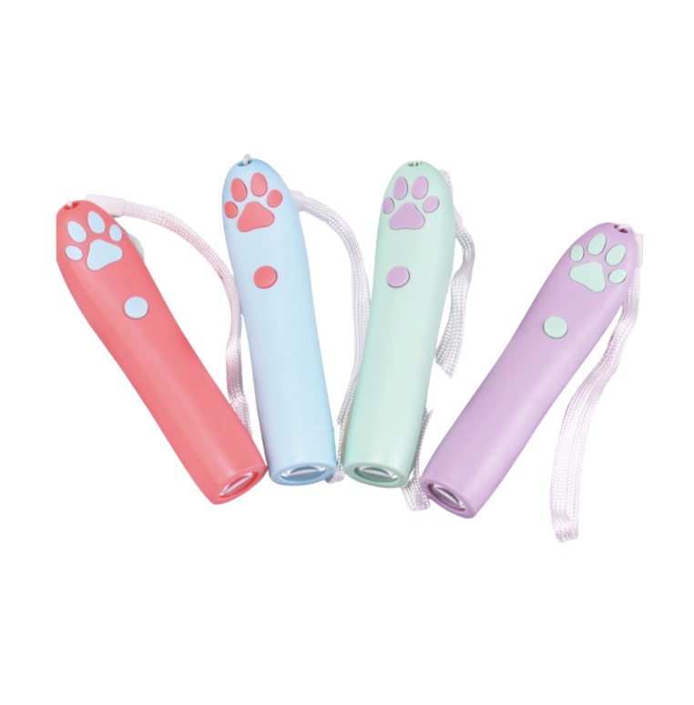 Dispositivo láser interactivo para mascotas, que proyecta figuras (como huellas, ratones u otras formas) en movimiento, generando estimulación visual y física. Ideal para perros o gatos como juguete de entretenimiento.