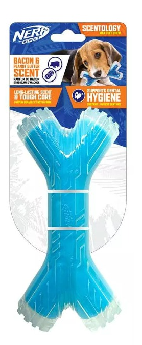 NERF DOG SUPER SCENT DENTAL CHEW TEETHER-PEANUT BUTTER Y BACON