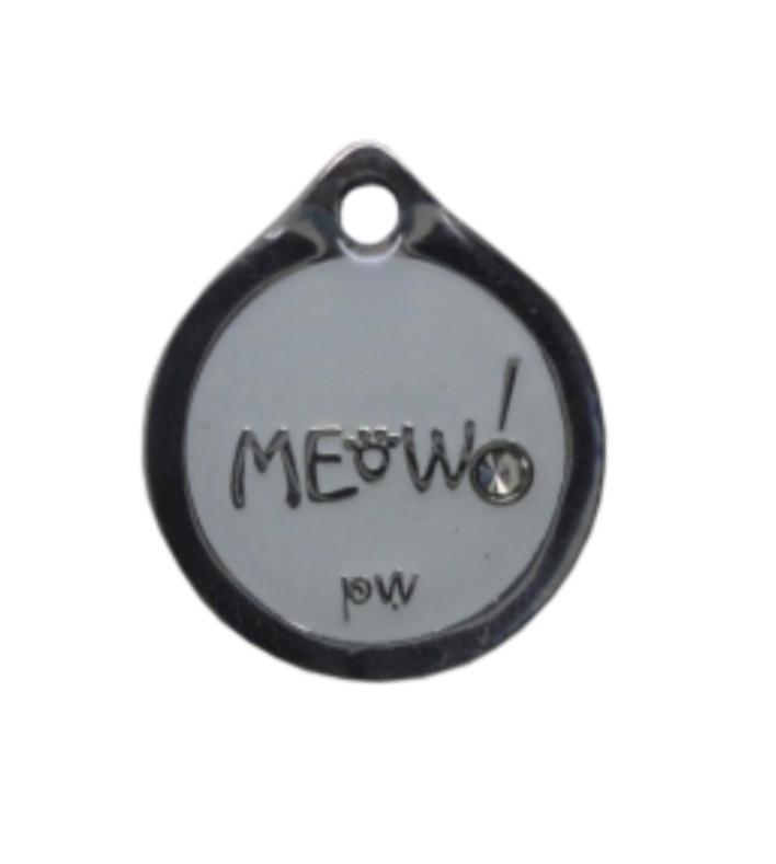 PLACA REDONDA BLANCA BORDE PLATEADO MEOW 2CM