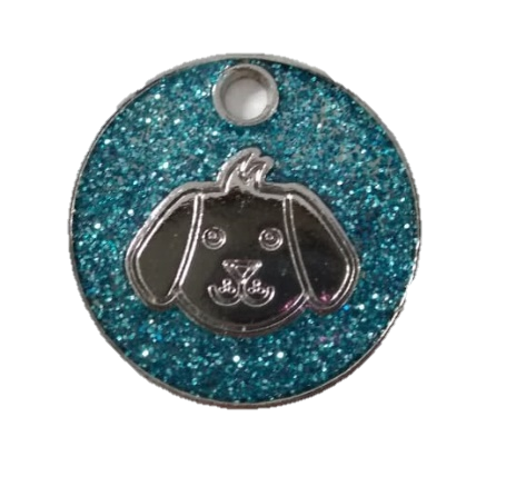 PLACA REDONDA CARA DE PERRO CELESTE 2.5CM