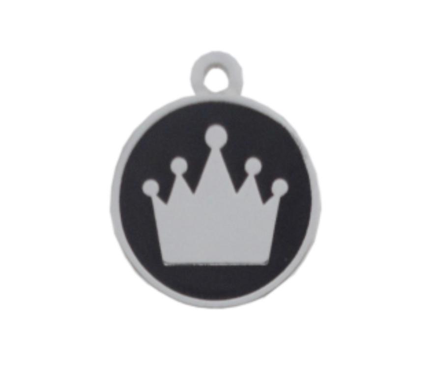 PLACA REDONDA NEGRA CORONA PLATEADA 2CM