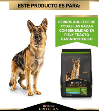 Purina PRO Plan Sensitive Skin and Stomach Perro todas las razas contribuyen a la *ayudan a los perros adultos con sensibilidad en piel y tracto gastroenterico , * promueve el equlibrio en la flora intestinal , * con prebioticos vivos para proteger contra amenazas externas. Purina Pro Plan Senstive Skin and Stomach formulado con miliones de prebioticos promueve el equlibrio de la flora intestinal para perros adultos.Purina Pro Plan Sensitive Skin and Stomach alimento completo y balanceado para perros adultos de 12 meses de edad en adelante esta formulado por milone de prebioticos vivos garantizados para proteger y fortalecer la salud intestinal que en combinación con el prebiotico promueve el equilibrio del microbioma.* Ayuda a mantener y proteger la barrera de la piel , * con prebioticos vivos para porteger contra amenazas externas, * fortalece la salud dgestiva