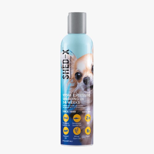 SHED-X DOG DERMAPLEX es un suplemento nutricional diario integral 100% natural garantizado, con el uso adecuado, para eliminar el desprendimiento excesivo en 3-6 semanas.