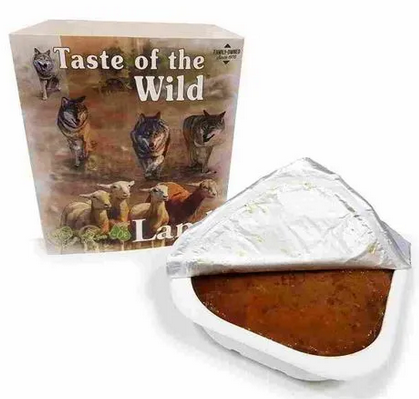 La bandeja Taste of the Wild es un alimento húmedo para perros apto para todas las etapas. Su fórmula altamente nutritiva, aporta muchos beneficios a la salud de tu perro proporcionandole un extra de hidratación y una dieta equilibrada. La ausencia de cereales ayuda a mantener una mejor digestión y reduce las posibles intolerancias alimentarias.